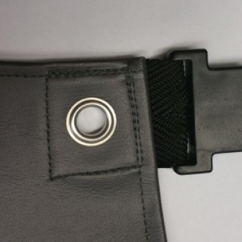 Bretelles réglables. La longueur est librement ajustable à la taille de la personne en coupant à partir du bas